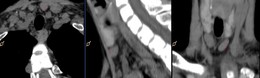 Nos envían a este paciente para realizarle un gammagrama paratiroideo y un estudio SPECT/CT con 99mTc-MIBI ante la sospecha clínica de un adenoma paratiroideo. La gammagrafía paratiroidea es un estudio de Medicina Nuclear que se utiliza para localizar tejido paratiroideo hiperfuncionante, particularmente en pacientes con datos clínicos y bioquímicos compatibles con hiperparatiroidismo. Contexto clínico y objetivo del estudio.En pacientes con sospecha de hiperparatiroidismo, la localización precisa de las glándulas paratiroides hiperfuncionantes es fundamental para una adecuada planeación terapéutica. La gammagrafía paratiroidea permite evaluar el comportamiento funcional del tejido paratiroideo, aportando información que no siempre es visible en estudios de imagen anatómica. Metodología del estudio y hallazgos en la gammagrafía.